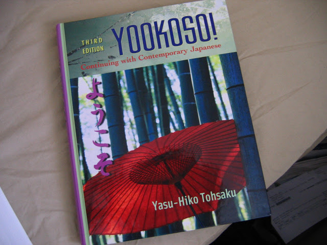 到了研二的時候,我到美國去當交換學生,但並沒有因此就中斷了學習日文的路。學校的大學部設有日文課程,所以我就選修了日文課,一個學期的學費要大概15萬台幣 (但因為是交換學生,只要付政大的錢,非常的划算) 只是光一本日文教科書就花了我200多塊美金 。跟美國大學生一起學日文是非常好玩的體驗,一來是看他們的學習方式,老師講解完一個文法之後問有沒有問題,全班20個人,大概會有15人舉手,而且還搶著要造句給老師聽聽看; 一來是看我們學習的差異,當我上去黑板寫漢字的時候,轉過頭來每一個人都是一種「原來字可以這樣(連著) 寫」的驚訝表情。而且因為老師是用英文教,有時候不知道自己是在學日文還是在學英文。