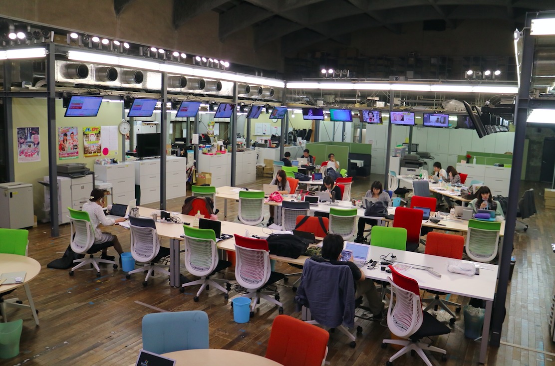 インタビューをした日、私たちは吉本興業の東京本社を見学させていただいた。吉本の本社はとても特徴的で、オフィスは廃校となった小学校を改造したものだ。社員の多くはもともと「職員室」だった場所で仕事をしており、以前教室だった場所が今は会議室となっている。体育館はワーキングスペースとなっており、建物の真ん中には小さな広場があって、とても印象的な場所であった。
